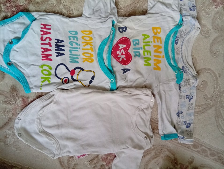 Renkli baskılı, kısa kollu, balıkçı yakalı bebek body. Fermuarlı ve Türkçe yazılı eğlenceli desenli. Yumuşak sentetik kumaştan üretilmiştir.