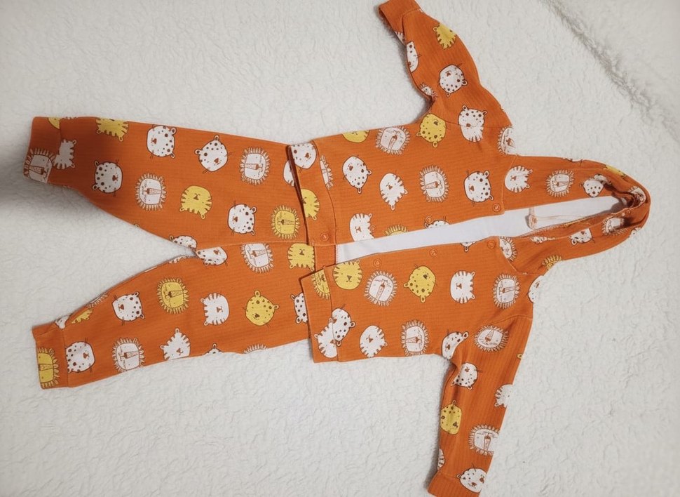 Renkli hayvan baskılarıyla kahverengi, uzun kollu, düğmeli ve yuvarlak yakalı, yumuşak ve sıcak kumaştan bebek erkek takımı. Yumuşak rahat kumaş 80 cm bebeğe kadar uygun 3 6 ay
