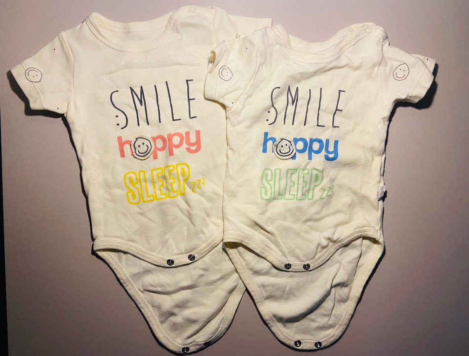 Pamuklu, kısa kollu, yuvarlak yakalı, renkli baskılı bebek zıbını. Fermuarlı ve üzerinde SMILE, hoppy, SLEEP yazıları var. FİYATLARIMIZ NET VE TEK FİYATTIR.