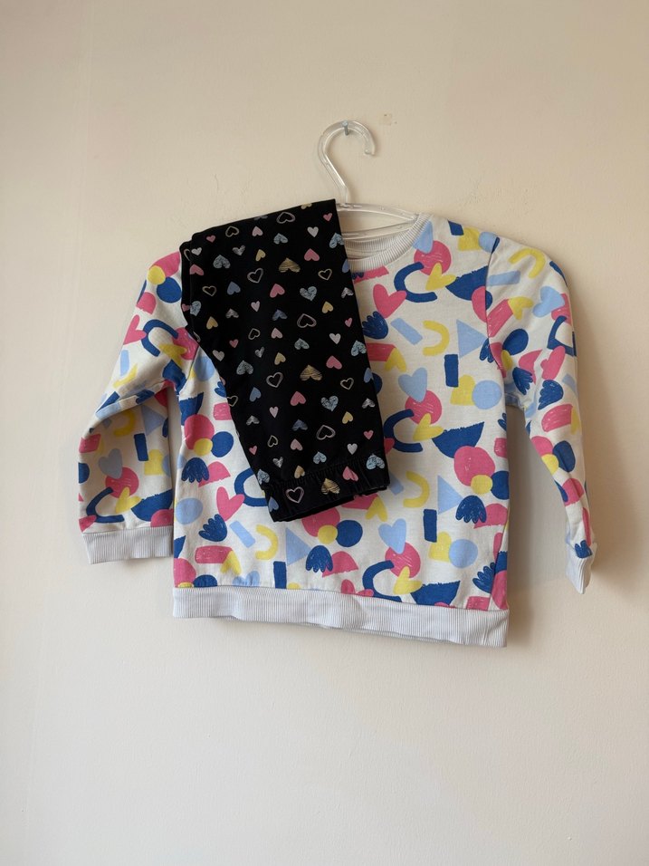 Renkli Baskılı Bebek Kız Uzun Kollu Takım