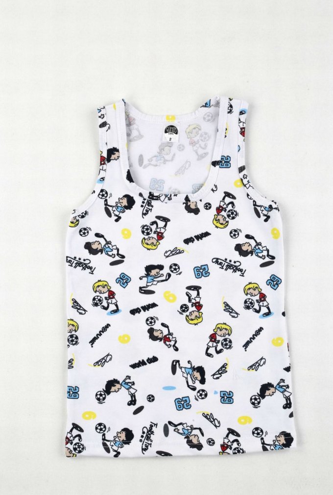 8-9 yaş Beyaz çocuk atleti, renkli baskılı çizgi karakterlerle dolu. Kolsuz ve yumuşak, rahat kumaştan üretilmiştir.