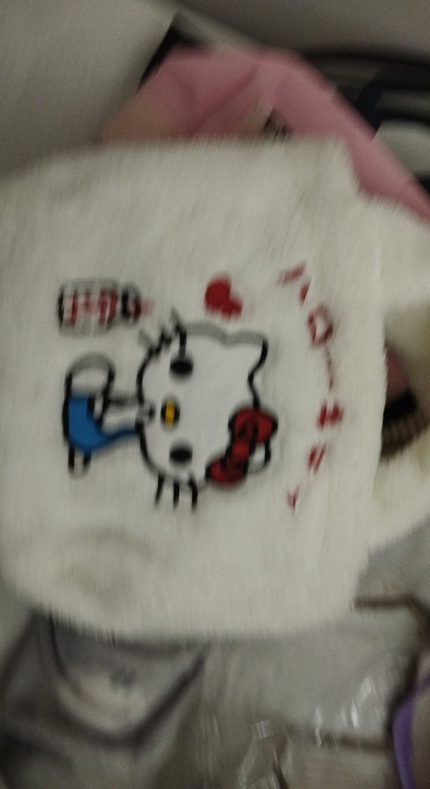 Yumuşak ve sıcak kumaştan yapılmış, renkli baskılı beyaz çocuk çantası. Çocuklar için konforlu ve eğlenceli bir tasarıma sahiptir. altında küçük bir lekesi vardır