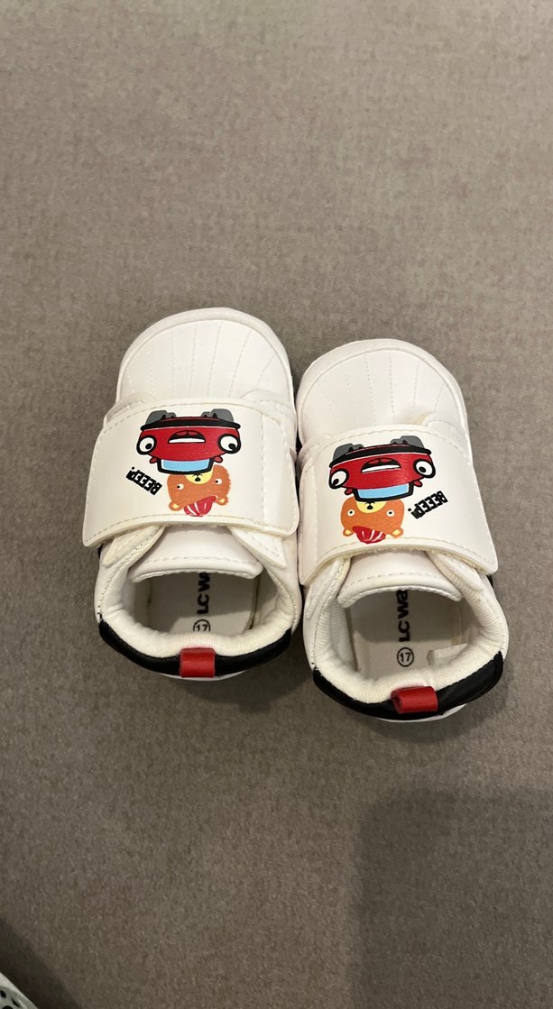 Renkli baskılı desenlere sahip beyaz erkek bebek ilk adım ayakkabısı, kolay kullanım için cırt cırtlı bantlıdır. Trendy casual sokak stili için uygundur.