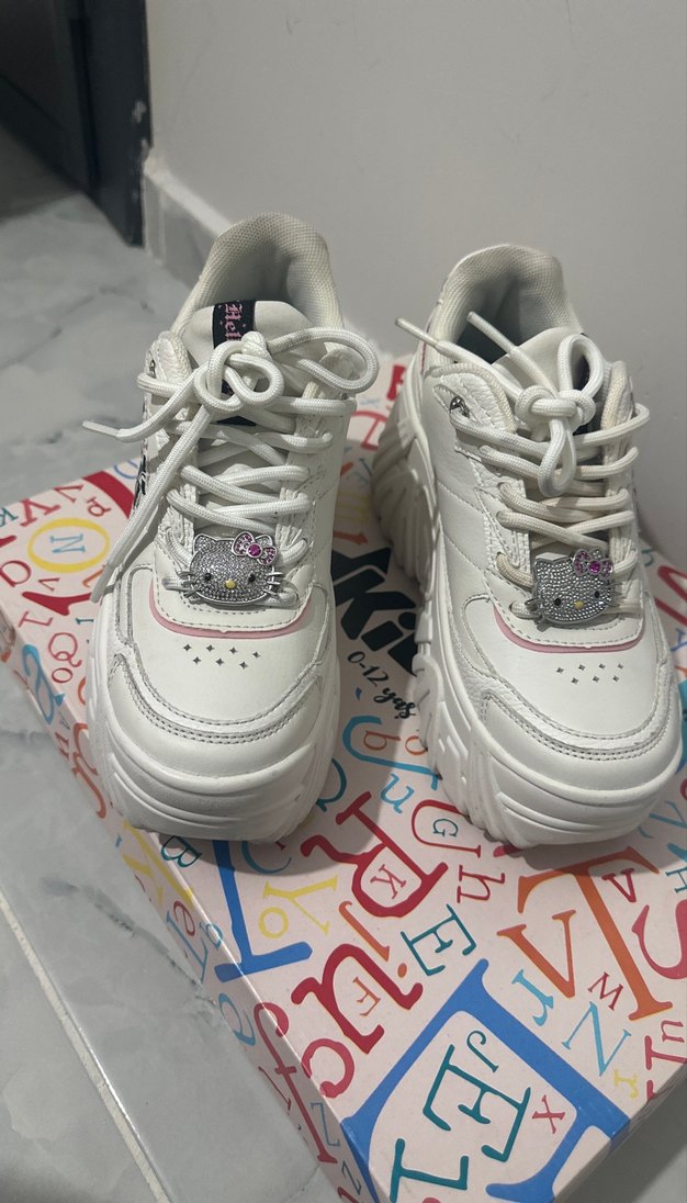 Renkli baskılı detaylara ve fırfırlı süslemelere sahip beyaz platform spor ayakkabılar, rahat ve şık bir sokak stili sunar. İlk bugunngiydım dar oldunu farkettim çokda beyenerek aldım Malisef küçük geldi alana hayırlı olsun Artk