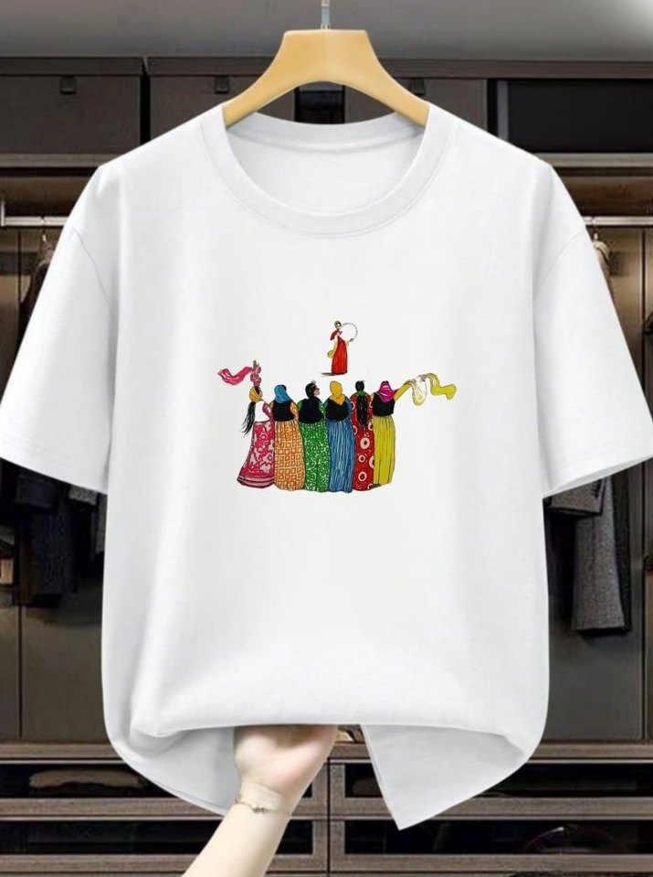 Yuvarlak yaka ve kısa kollu bu kadın tişörtü, renkli baskı ve drapeli detaylarla bohem tarzını yansıtıyor. Adet fiyatıdır.Her beden bulunur.Çocuklar için de bedenler mevcut.