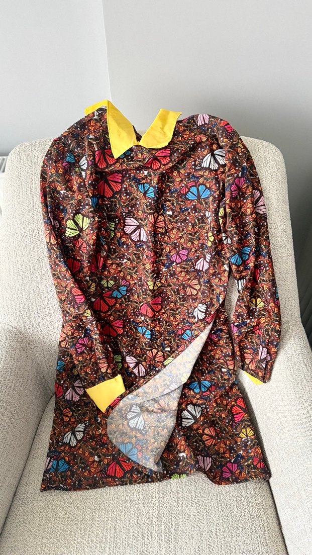Renkli kelebek desenli, uzun kollu, yakalı ve bol kesim tunik. Günlük kullanıma uygun, dökümlü tasarıma sahip. En az 500 tl ye kargoya gidiyorum dipnot.