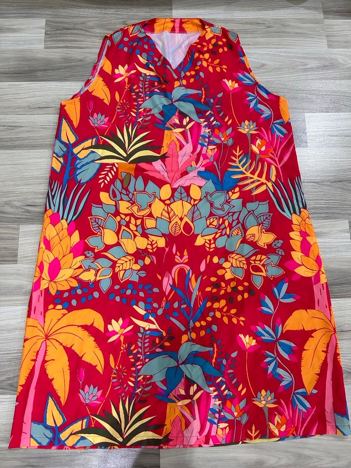 Renkli Baskılı Bohem Uzun Kolsuz Elbise