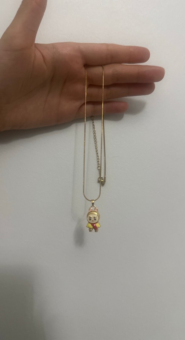 Altın renkli zincir kolye, renkli baskılı bohem tarzda kolye ucu ile günlük kullanıma uygun.
