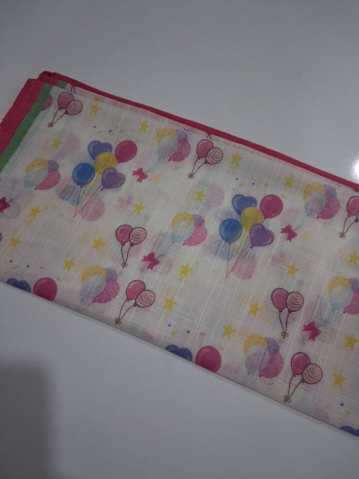 Renkli balon desenli baskıya sahip, yumuşak kumaştan yapılmış çocuk başörtüsü
