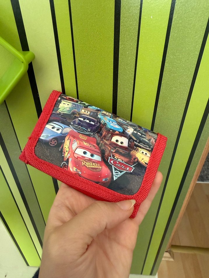 Renkli baskılı, tokalı çocuk cüzdanı. Kırmızı kenarlıklı ve pop kültür araba desenli, bohem ve retro tarzlara uygun. Fermuarı bozuktur