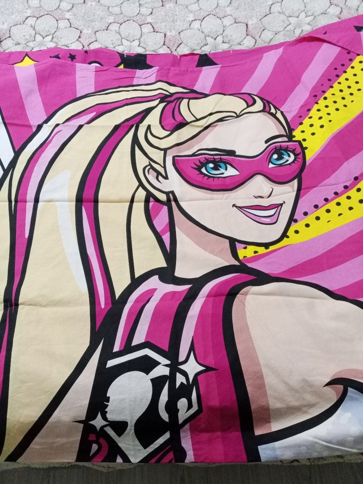Yumuşak pamuk kumaştan yapılmış, pembe tonlarda renkli baskılı çocuk battaniyesi. Canlı karakter illüstrasyonu yorgan nevresimi sadece