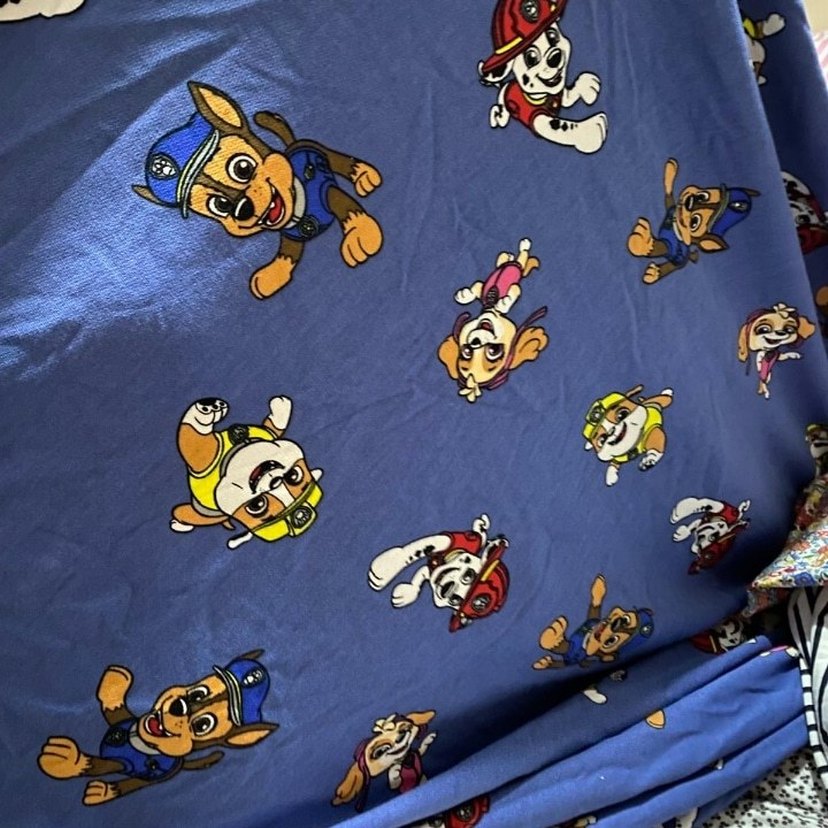 Mavi zemin üzerine renkli baskılı animasyon karakterleri bulunan yumuşak sentetik kumaştan üretilmiştir. ️metre 50 tl kumaş