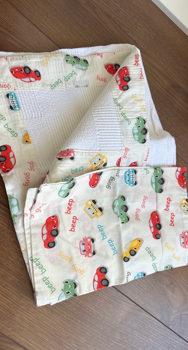 çeşitli arabalar ve eğlenceli kelimelerle baskılı renkli çocuk pike.