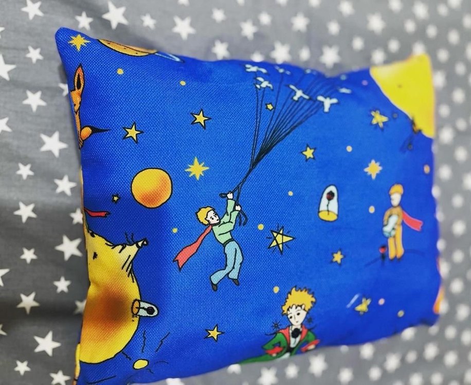 Renkli baskılı desenli, mavi dijital baskı kumaştan yapılmış çocuk uyku yastığıdır.