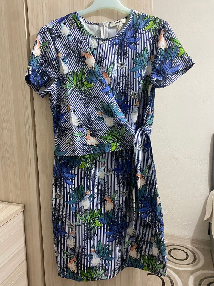 Renkli Baskılı Drapeli Mini Kadın Elbise