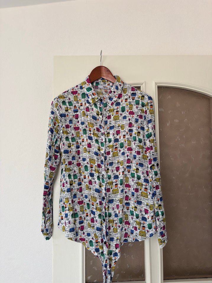 ✨ Canlı renklerde ev desenli gömlek ✨ 36–40 beden aralığına uygundur ✨ Sadece 1 kere giyildi, tertemiz ve deformesiz ✨ Günlük kombinler için şık