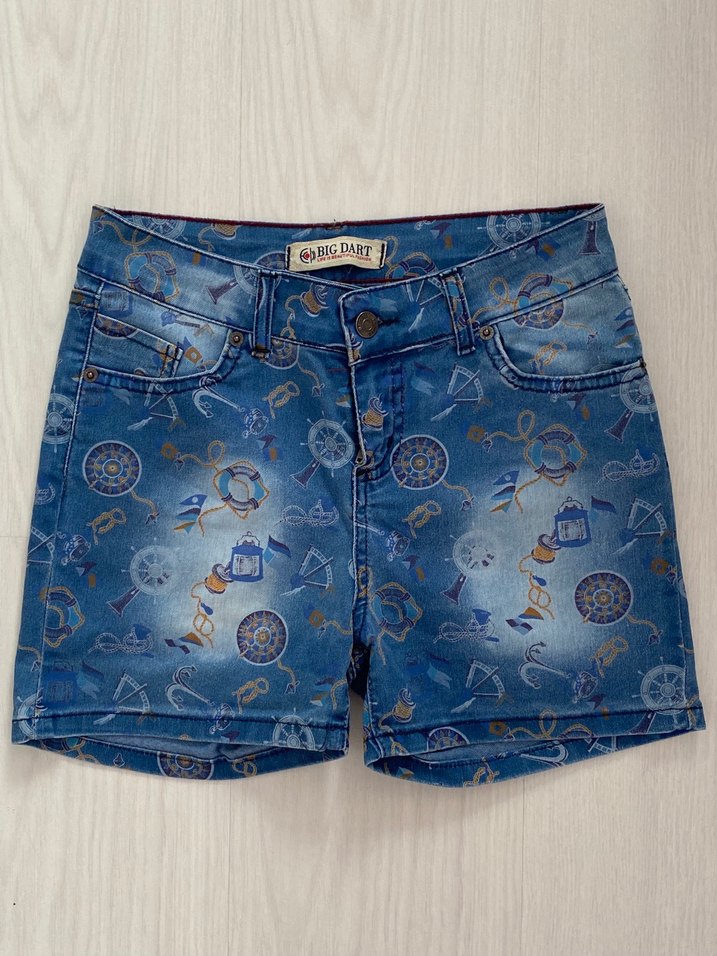 Renkli Baskılı Düğmeli Kız Kot Şort