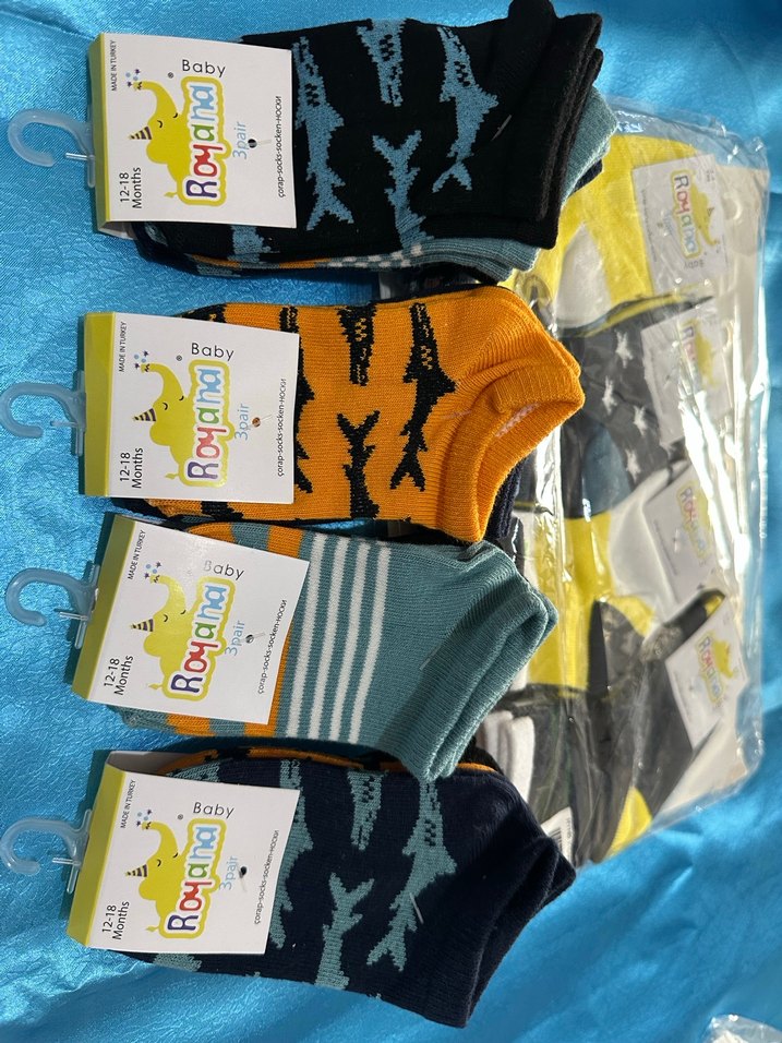 Renkli ve çeşitli desenlere sahip, dört çift baskılı erkek bebek çorabı. Yumuşak ve rahat kumaştan üretilmiştir. 12 li satış fiyatı