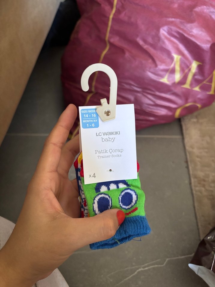 Renkli baskılı, erkek bebekler için 4'lü çorap seti. 1-6 ay arası bebekler için uygun, çok renkli tasarımlara sahiptir.