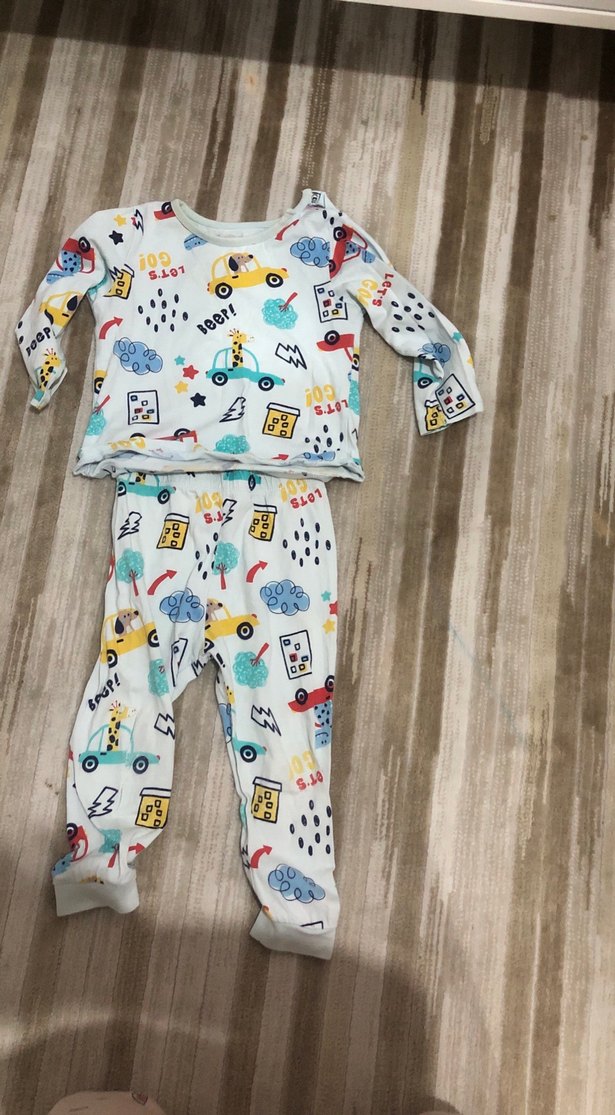 Renkli baskılı, uzun kollu ve bisiklet yaka erkek bebek takımı. Yumuşak, örme kumaştan üretilmiştir.