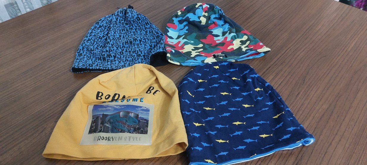 Çeşitli desenlerde baskılı, yumuşak tekstilden yapılmış renkli erkek bereleri. Trendy günlük stil için uygundur. Bir bere üzerinde "STYLE" yazısı bulunur.