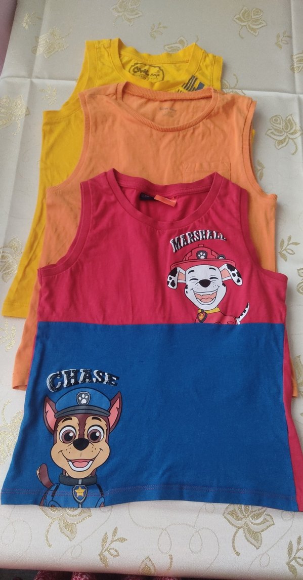 Renkli baskılı, kolsuz çocuk atletleri seti. Birinde "CHASE" yazısı ve çizgi film karakterleri bulunur. 3lü fiyatıdır..