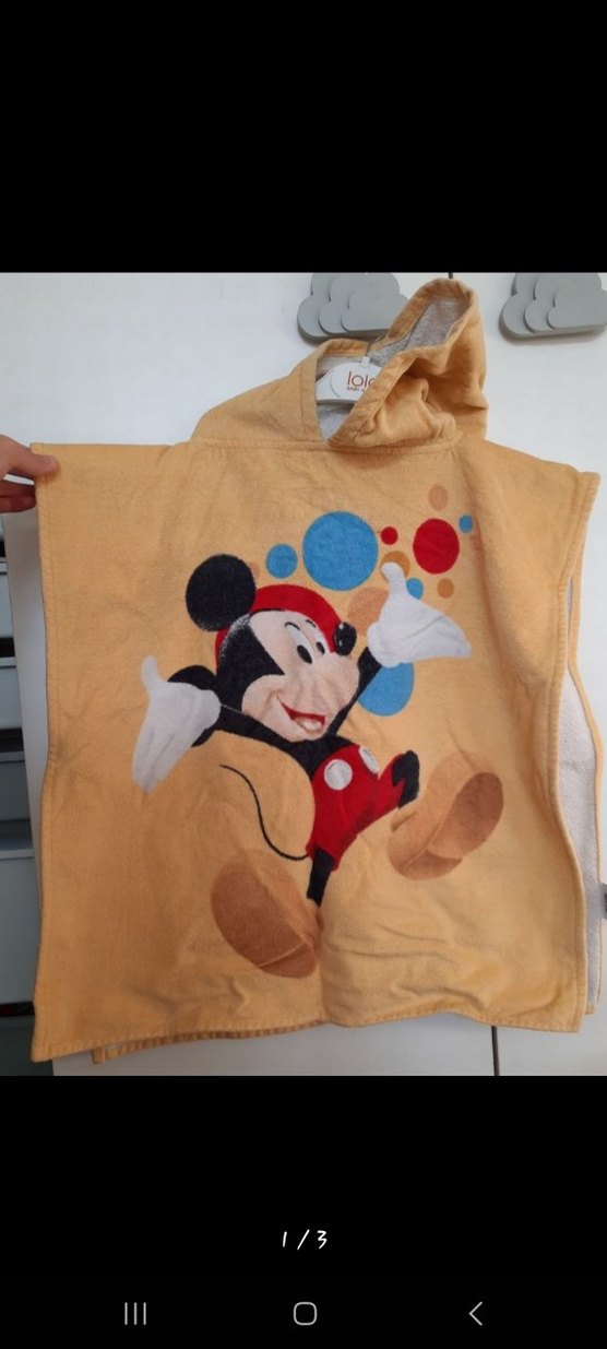 Kapüşonlu, renkli baskılı sarı erkek çocuk bornozu, yumuşak kumaştan yapılmıştır. hiç giyilmedi dolapta saklandı, 1-5 yaş arasına olur. boy 58 cm en 55 cmdir. taç markadır
