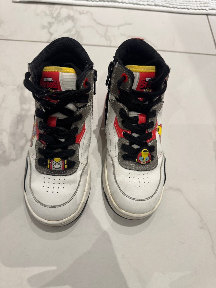 Beyaz kauçuk tabanlı, renkli baskılı ipli ve fermuarlı Zara bot