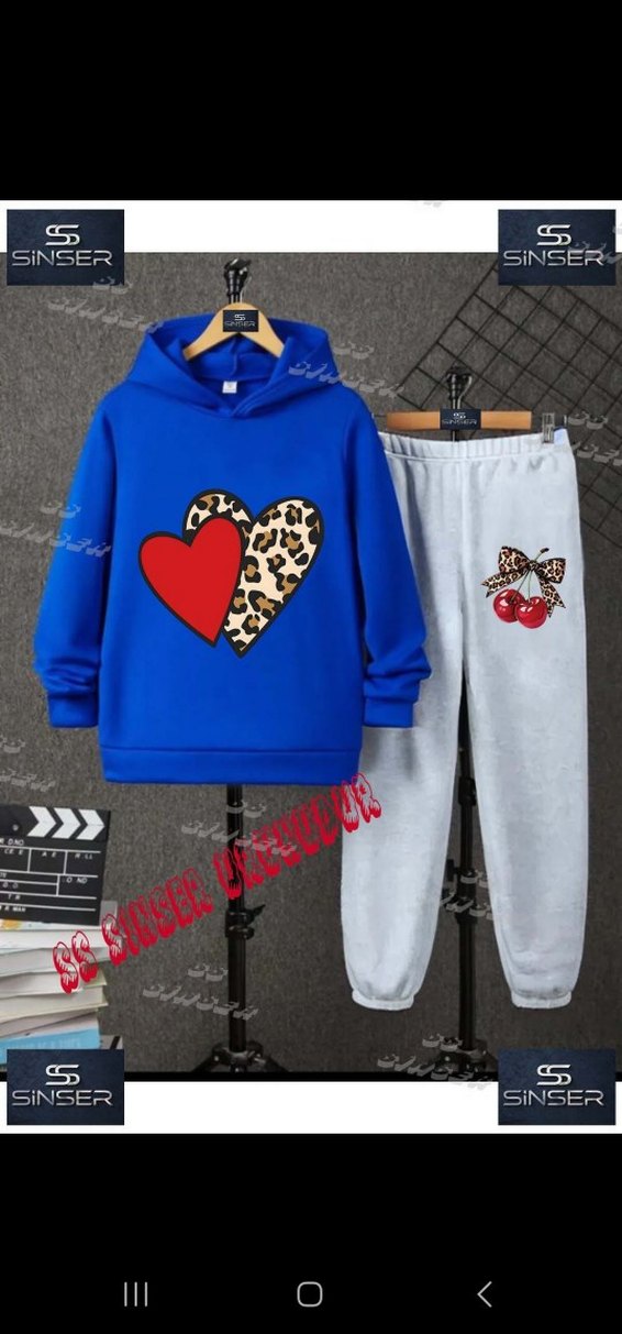 Mavi kapüşonlu ve gri pantolonlu, renkli baskılı ve örme detaylı, bol kesim erkek çocuk eşofman takımı. Marka: SINSER.
