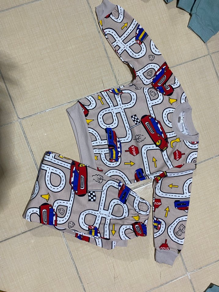 Renkli baskılı, uzun kollu ve yuvarlak yakalı erkek çocuk Eşofman takımı. Yumuşak ve sıcak örme kumaştan üretilmiştir.