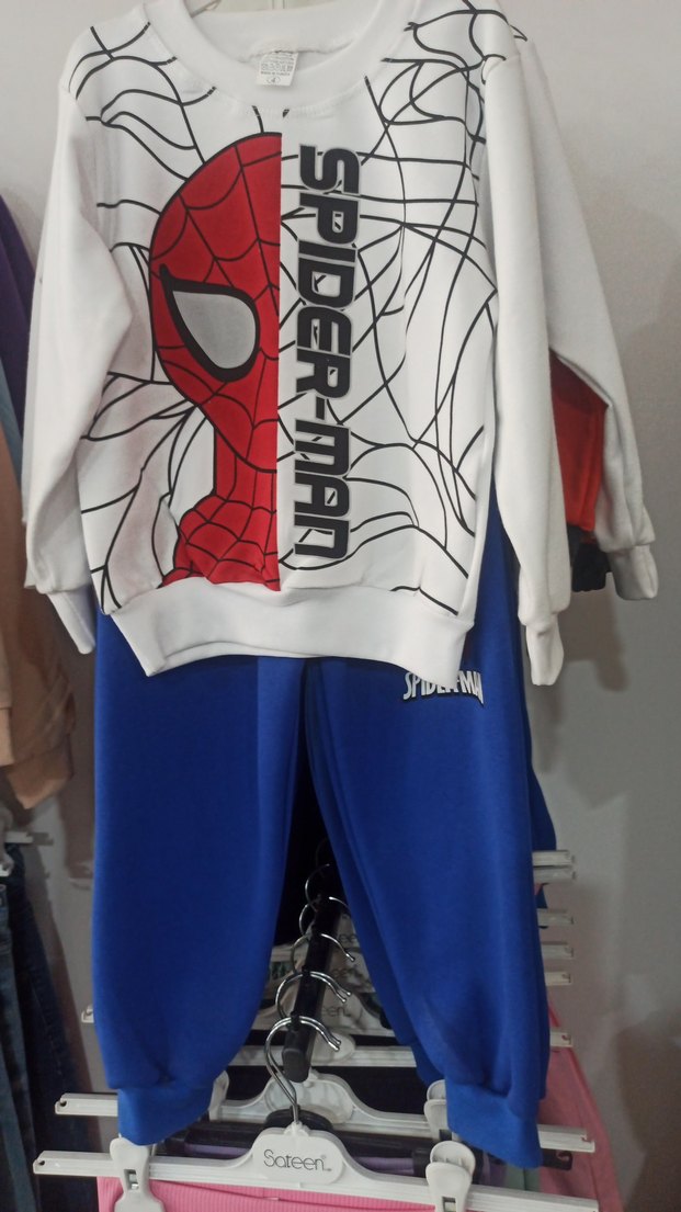 Rahat kesim, renkli Spider-Man baskılı beyaz üst ve mavi pantolonlu erkek çocuk eşofman takımı. Üstte yuvarlak yaka ve sentetik kumaş bulunur. Velcro detayı mevcuttur. ️ 4/5/6 yaşlari mevcuttur