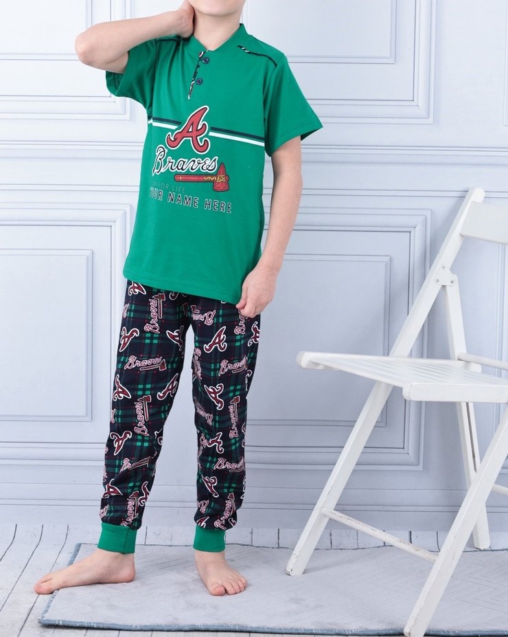 Renkli baskılı ve bağcıklı detaylı, rahat kesim erkek çocuk eşofman takımı. Üstü yeşil, altı desenli ve rahat bir model.