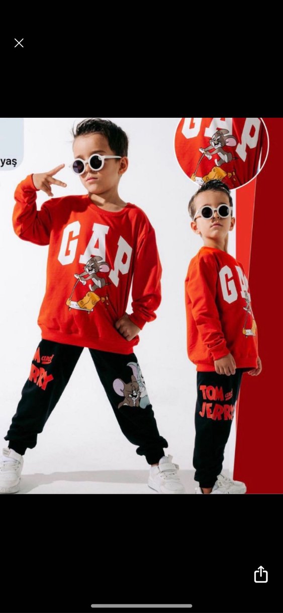 Renkli baskılı ve payet detaylı, rahat kesim erkek çocuk eşofman takımı. Kırmızı üstü kruvaze yaka ve yumuşak kumaştan üretilmiştir.