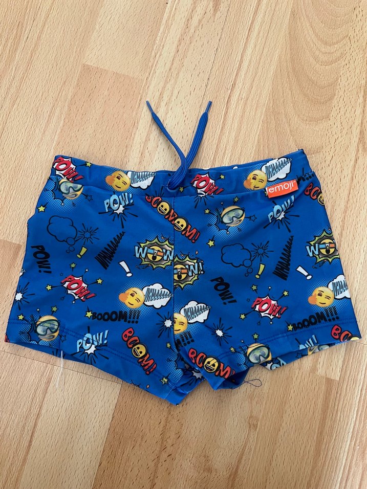 Renkli baskılı, mavi erkek çocuk mayo, belde bağcık ile sabitlenir. Komik tarzda eğlenceli grafikler içerir.4 yaştan itibaren kullanılabilir