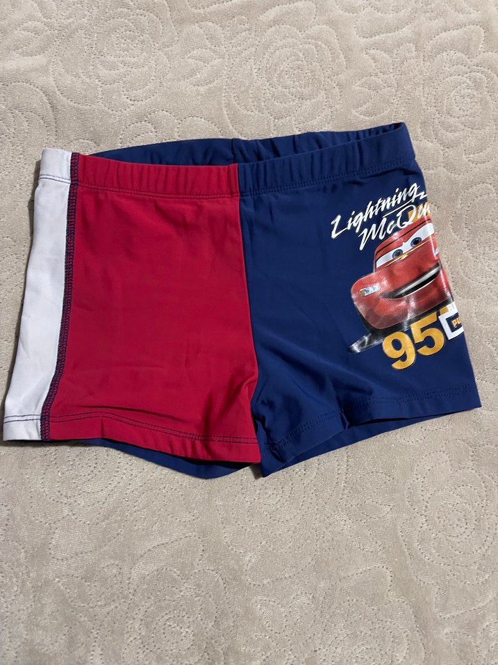 Kırmızı ve mavi panelli, baskılı Lightning McQueen figürlü renkli erkek çocuk mayo şortu, rahat lastikli bel bandına sahiptir. ♂️