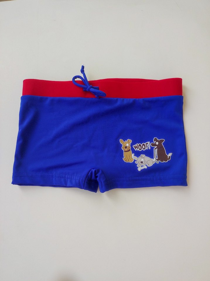 Kırmızı bel bandı ve ayarlanabilir bağcık ile mavi renkli, köpek baskılı renkli erkek çocuk mayo şortu. Sorunsuz sayılı giyildi #çocuk #çocukmayo #çocukyüzme #yüzme #yüzmeşort