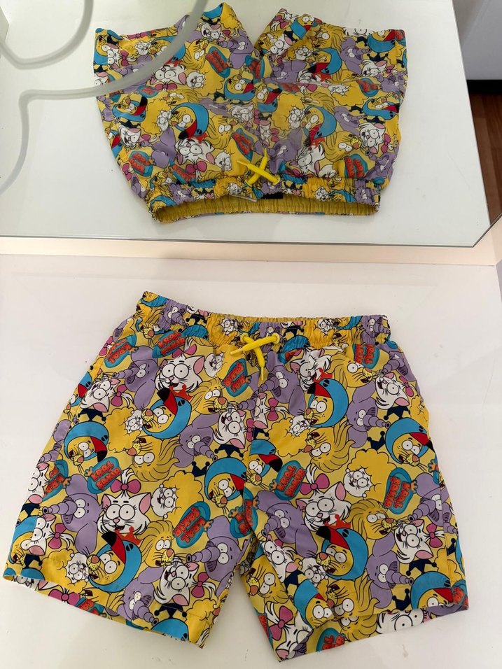 Renkli baskılı desenlere sahip, erkek çocuklar için kolsuz mayo üstü ve elastik bel detaylı şort takımı.