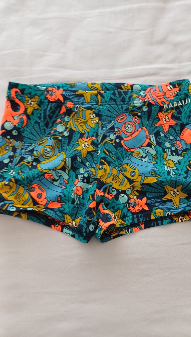 Renkli, deniz canlıları ve robot desenli erkek çocuk mayo şortu. Yumuşak ve hızlı kuruyan kumaştan üretilmiştir.