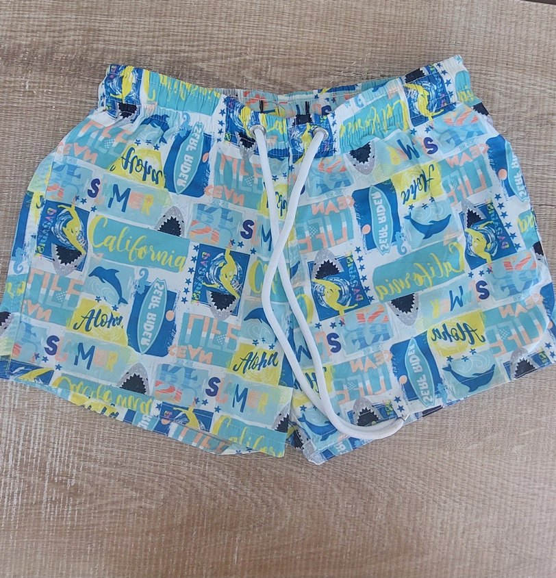 blackspade marka Renkli baskılı desenli, belden bağlamalı elastik erkek çocuk mayo şortu. ürün dar geldiği için 1 ya da 2 kere giyildi marka ve bedenini kesmişim o yüzden bel ölçüsünü görsele ekledim.