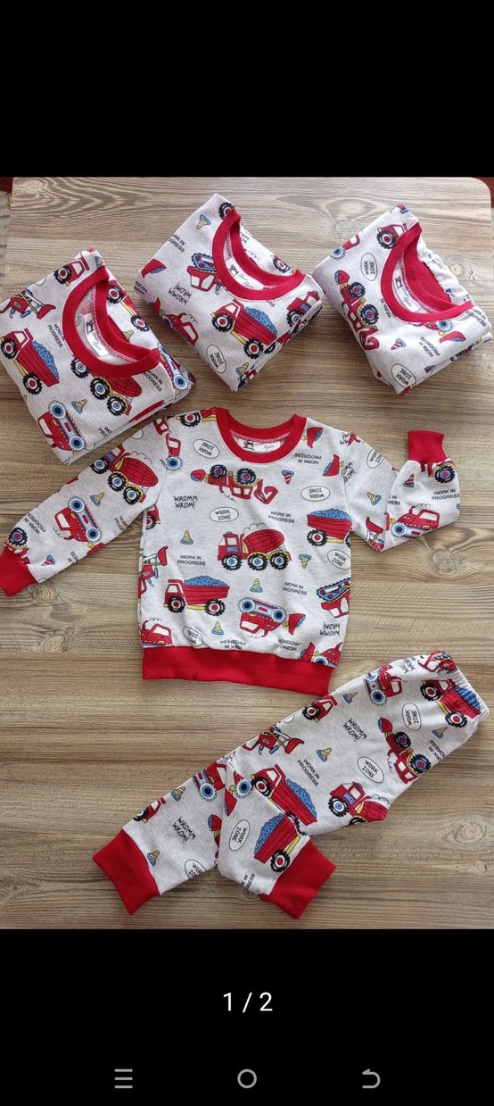 Renkli baskılı çocuk pijama takımı, canlı kırmızı manşetlere ve yumuşak kumaşa sahiptir. kreş vb. yerlerde rahatlıkla kullanılır5/6 yaş