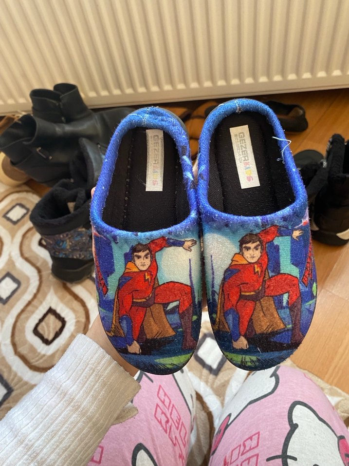 Yumuşak kumaştan, renkli baskılı pop kültür desenli erkek çocuk terliği. Ayarlanabilir cırt cırtlı, rahat kullanım sağlar.