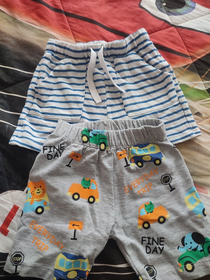 Yumuşak pamuktan, bol kesim, renkli baskılı erkek çocuk şortları. Rahatlık için lastikli bel. Üzerinde "FINE DAY" yazıları bulunur.