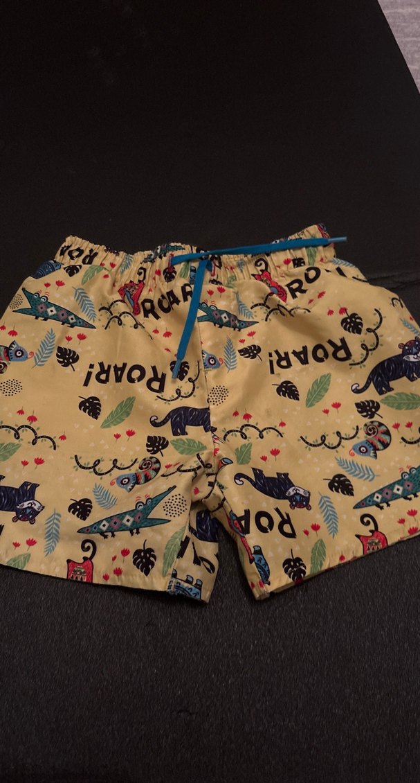 Renkli baskılı desenlere sahip, rahat kesim erkek çocuk şortu. Yumuşak sentetik kumaştan, bohem ve retro tarzında sokak giyimi için uygun.