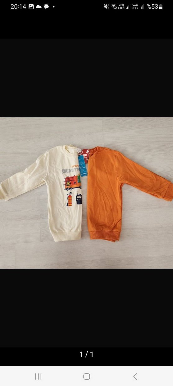 Uzun kollu, bisiklet yaka ve bol kesim erkek çocuk sweatshirtü. Yumuşak ve sıcak dokuma kumaştan, renkli baskılı ve beyaz-turuncu renklerde.