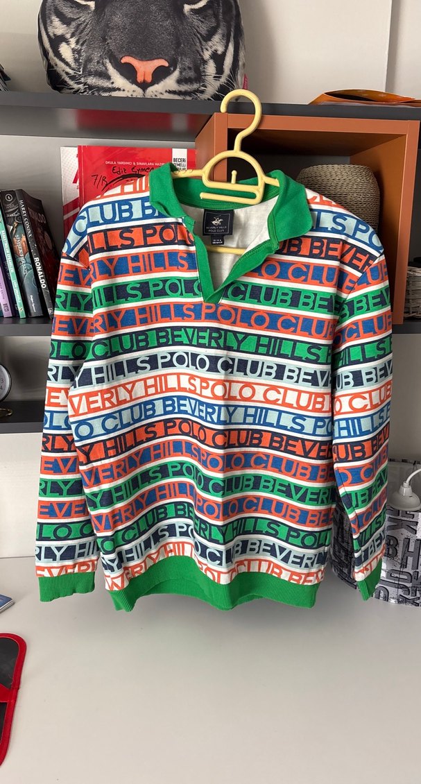 Renkli baskılı, uzun kollu, yuvarlak yakalı erkek çocuk sweatshirtü. Örme detaylı, yumuşak ve rahat polar kumaştan, bol kesim sokak stili için uygun.