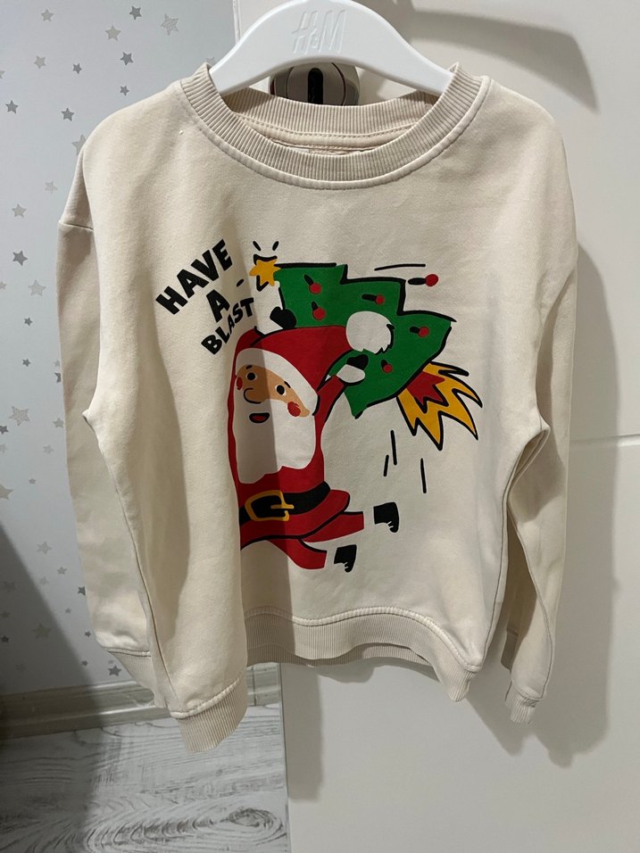 Uzun kollu, yuvarlak yaka beyaz erkek çocuk sweatshirtü. Renkli baskılı, bol kesim ve örgü detaylı, yumuşak ve sıcak kumaştan üretilmiştir.