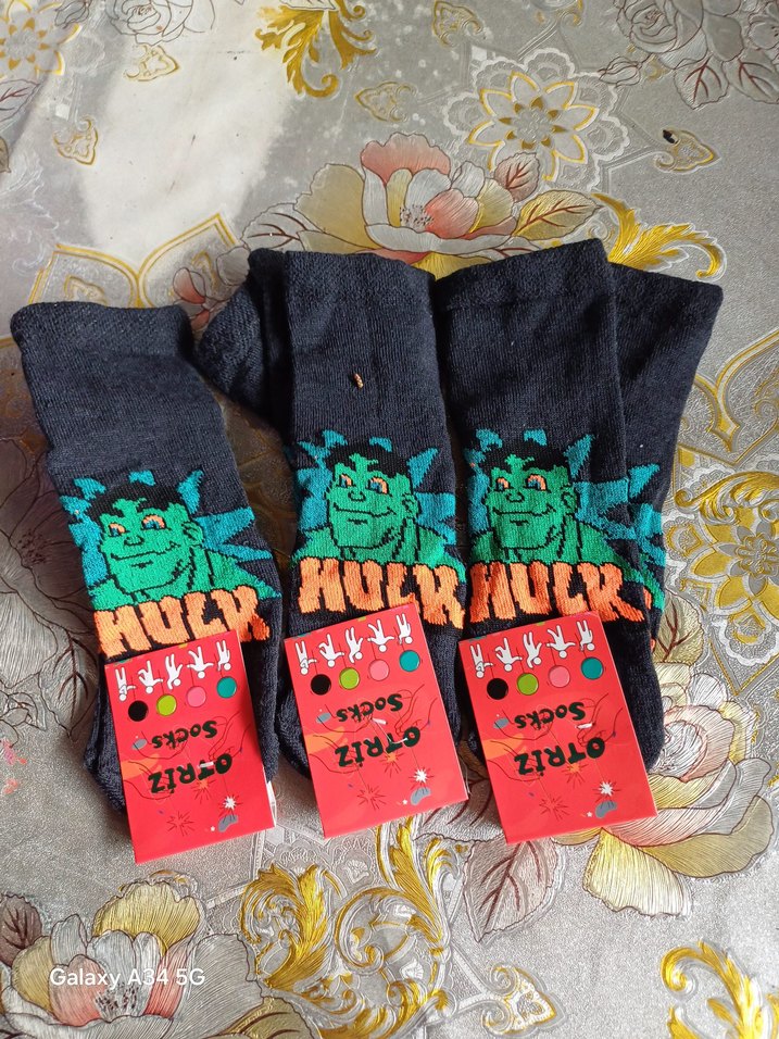 Koyu renkte, canlı yeşil ve turuncu Hulk baskılı renkli erkek çorapları. Rahat ve eğlenceli tasarıma sahiptir. 9 ve 10 yaş