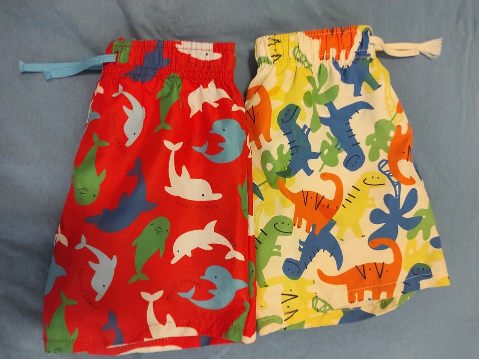 Sentetik kumaştan, renkli pop kültür baskılı, fermuarlı ceplere sahip, dar kesim erkek şortları.