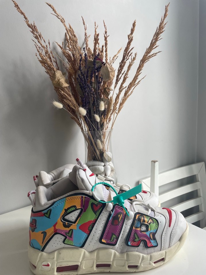 Renkli baskılı kağıt malzemeden yapılmış, kabarık tabanlı retro tarzda erkek spor ayakkabısı.
