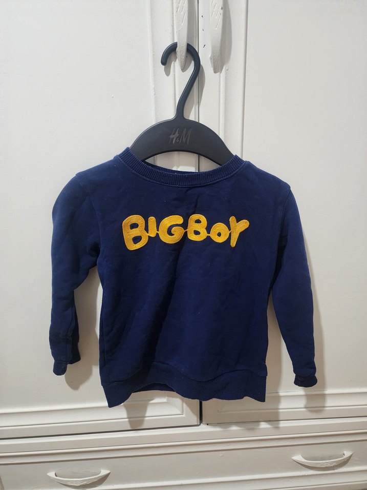 Uzun kollu, yuvarlak yakalı ve bol kesim erkek sweatshirtü. Yumuşak tüylü dokuda, renkli 'BIGBOY' baskılı, trende uygun günlük stil.